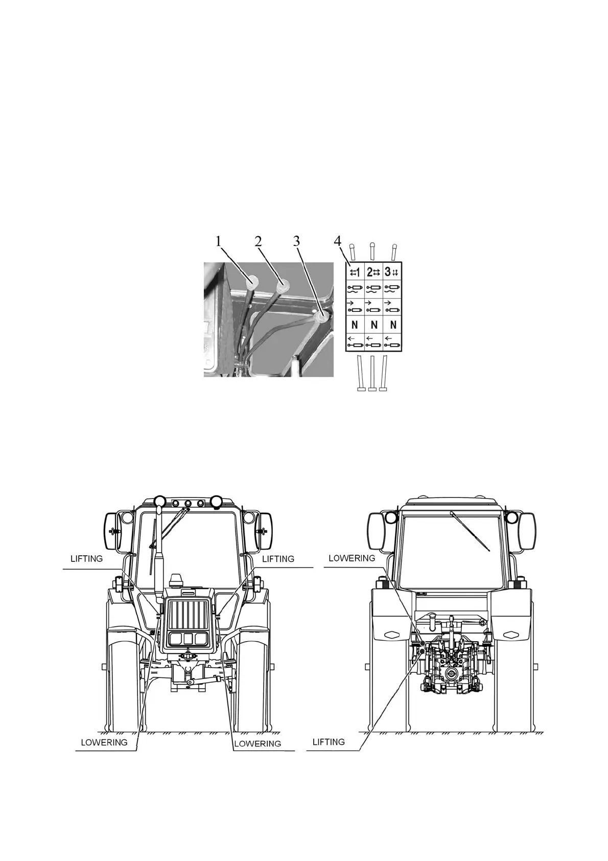 ing” and “Neutral”. In the position “Positive lowering” with the engine running the handle