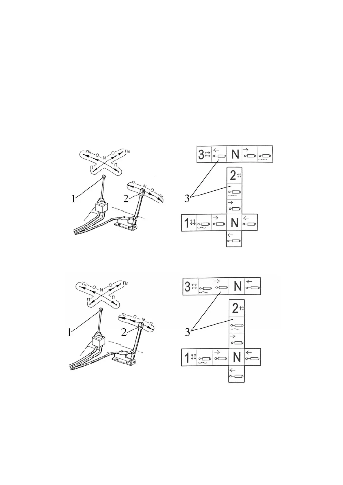 1 – joystick; 2 – lever; 3 – instruction plates of joystick and lever control.