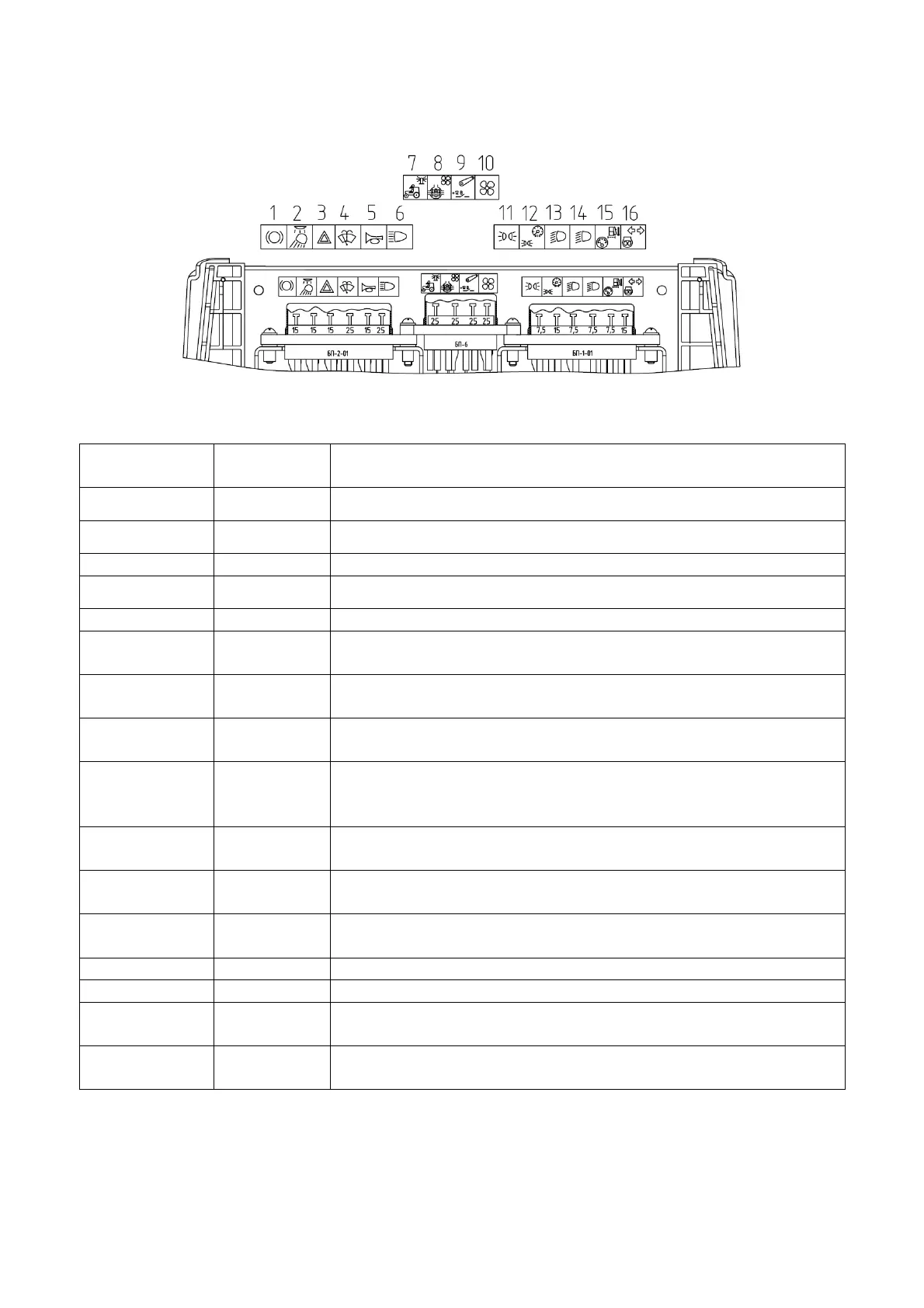 Table 2.18.2 – Assignment of fuses of the instrument dashboard with molded panel
