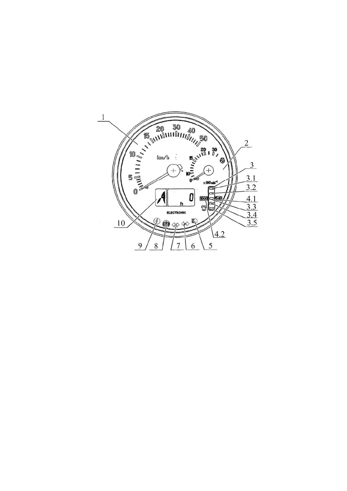 4.1, 4.2– annunciators of PTO speed scale ranges (yellow color);