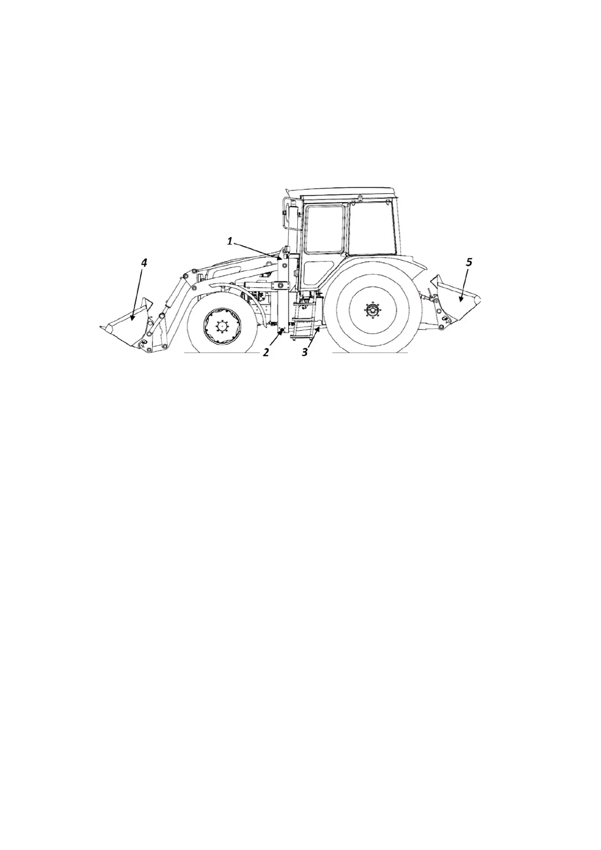 3 – tapped rod; 4 – loader bucket; 5 – rear ballast weight.