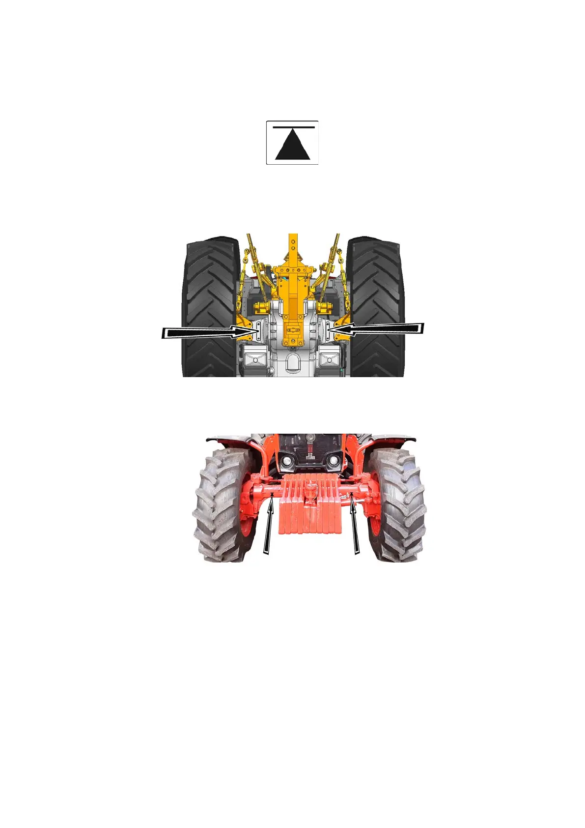 Signs of jacking up the rear of the tractor are applied to the tubes of the rear axle