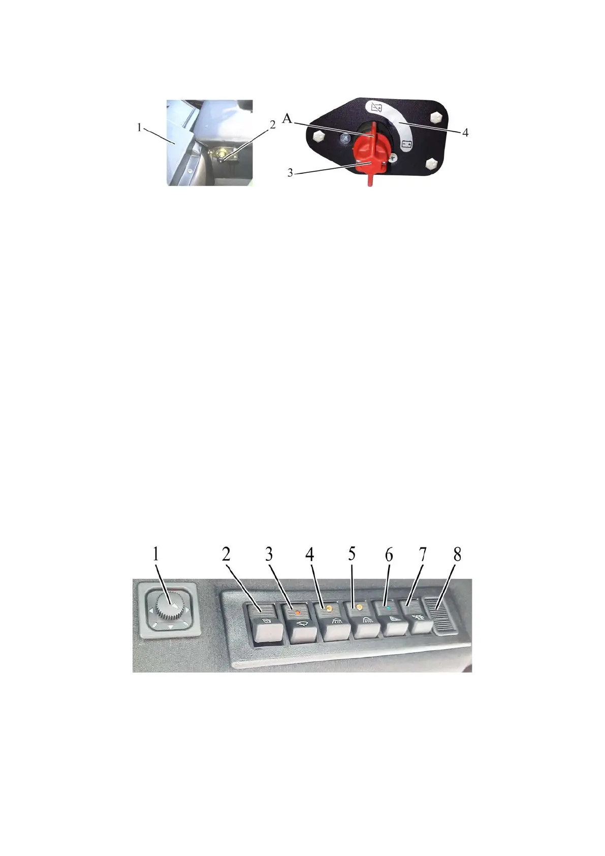 screen wiper switch; 4 – rear working lights switch; 5 – switch of front working lights on cab