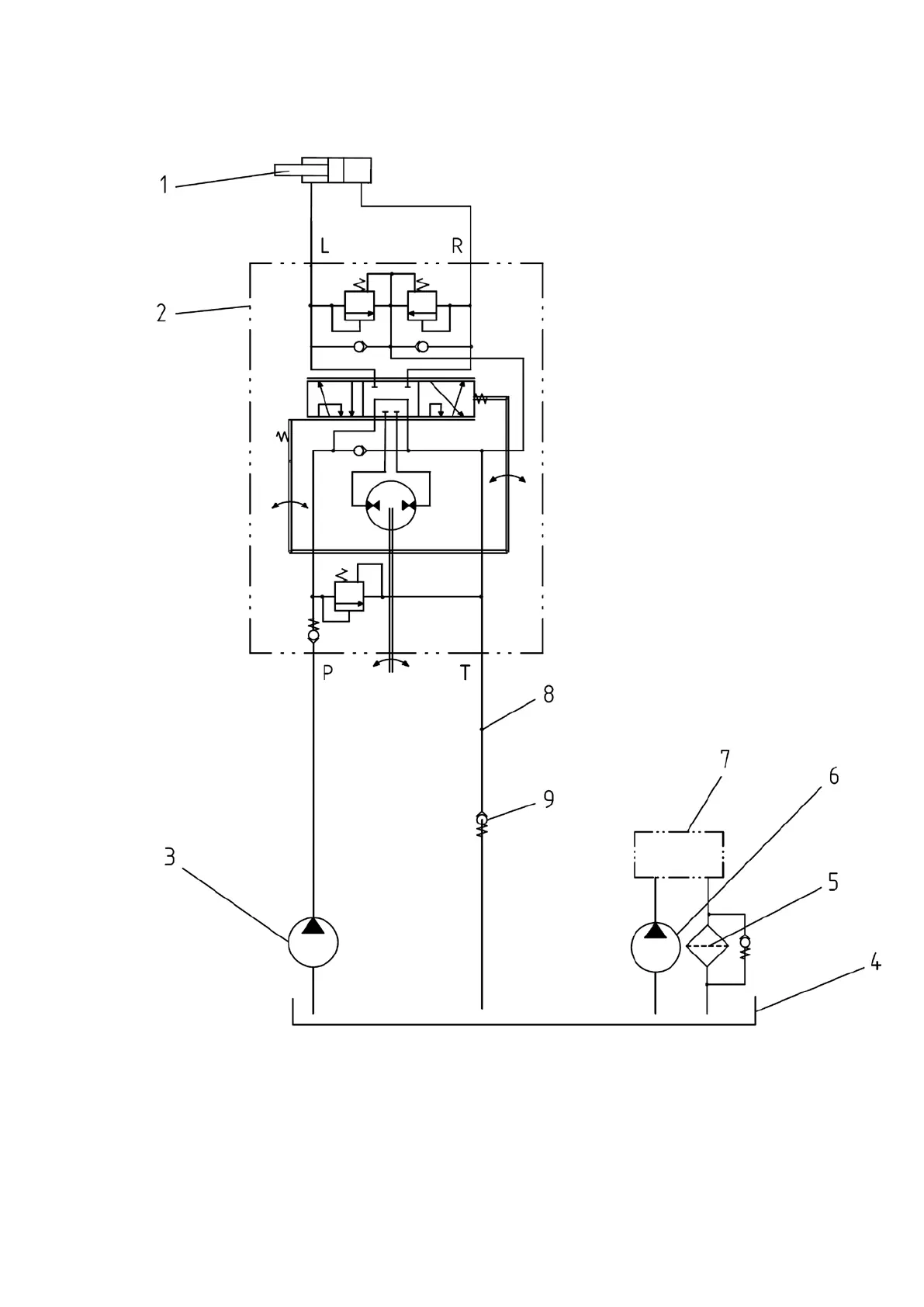 and HSC; 5 filter; 6 HLL pump; 7 - hydraulic lift linkage (HLL); 8 pressure sensor; 9