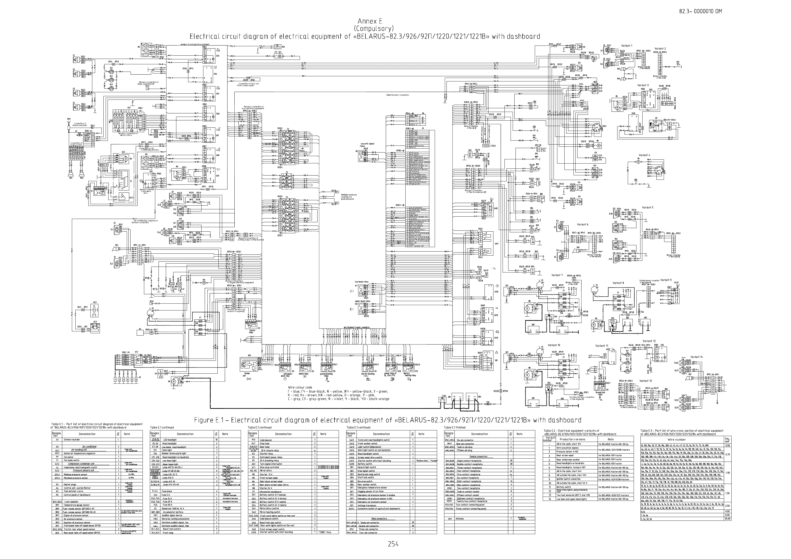 Belarus 82.3 - ANNEX E (Compulsory) - Electric Circuit Diagram of Electrical Equipment of BELARUS- 82.3;926;92П;1220;1221;1221 B with Dashboard