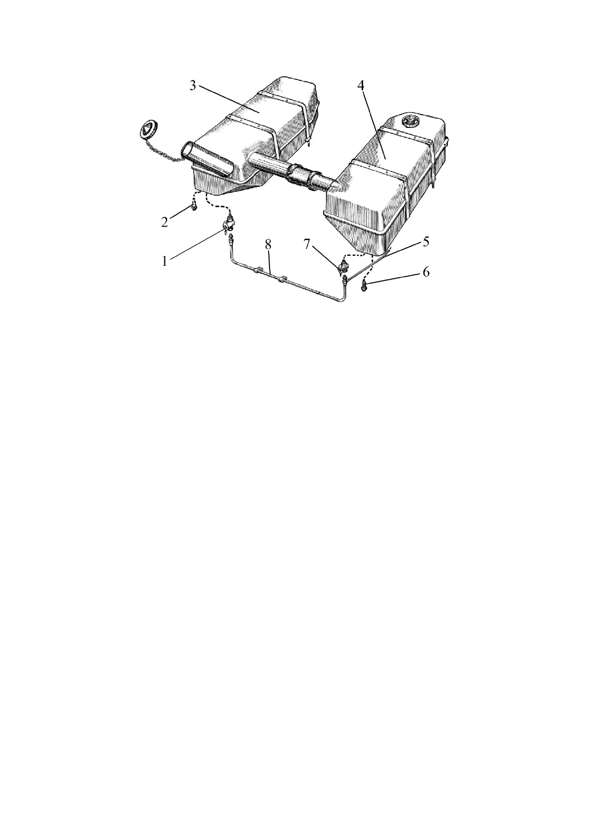 1, 7 – valve; 2, 6 – drain fitting; 3, 4 – tank; 5 – line of fuel supply into the engine; 8 – fuel