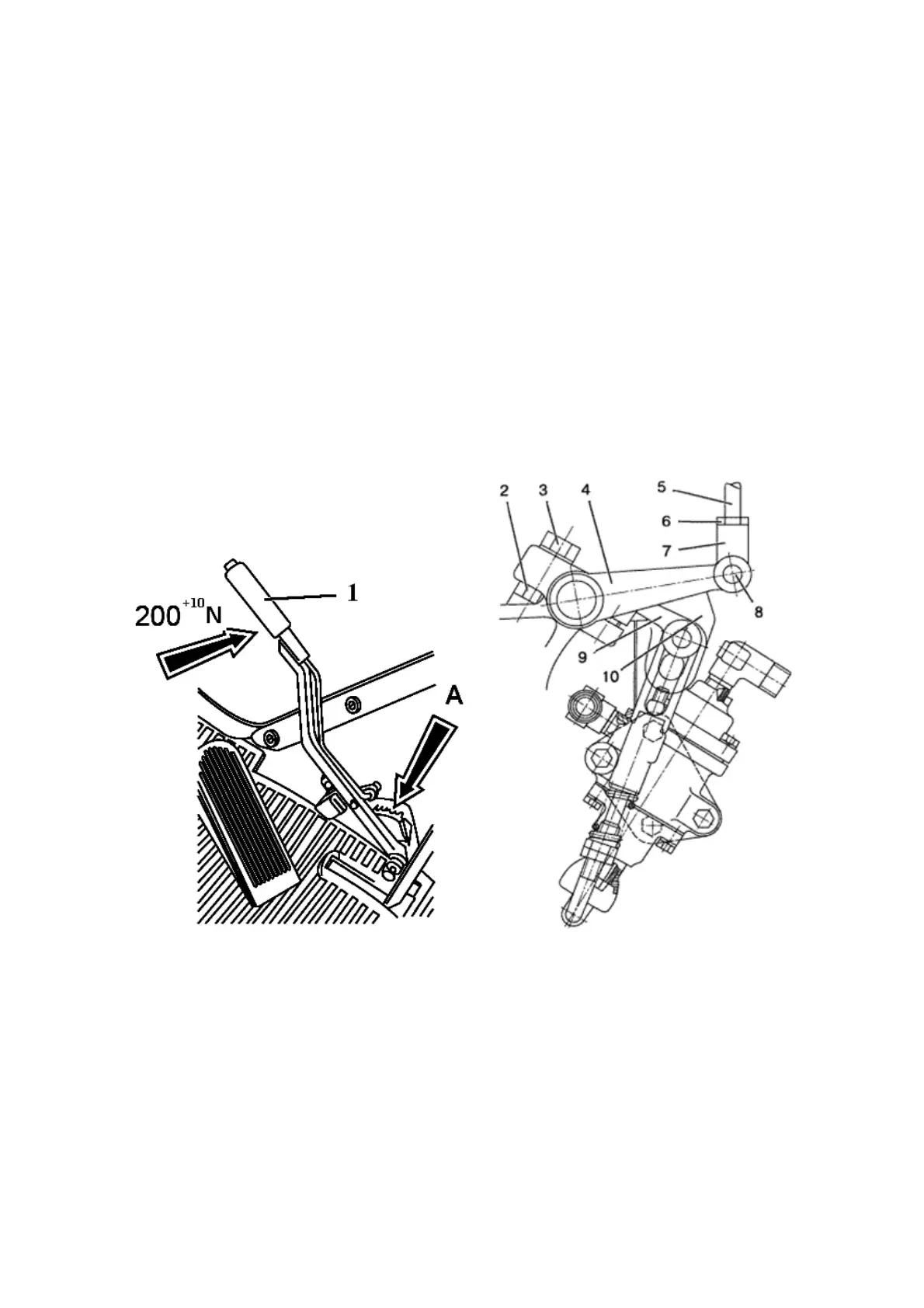 the right brake pedal, and then rotating fork 7, align holes of lever 4 and fork 7 and insert