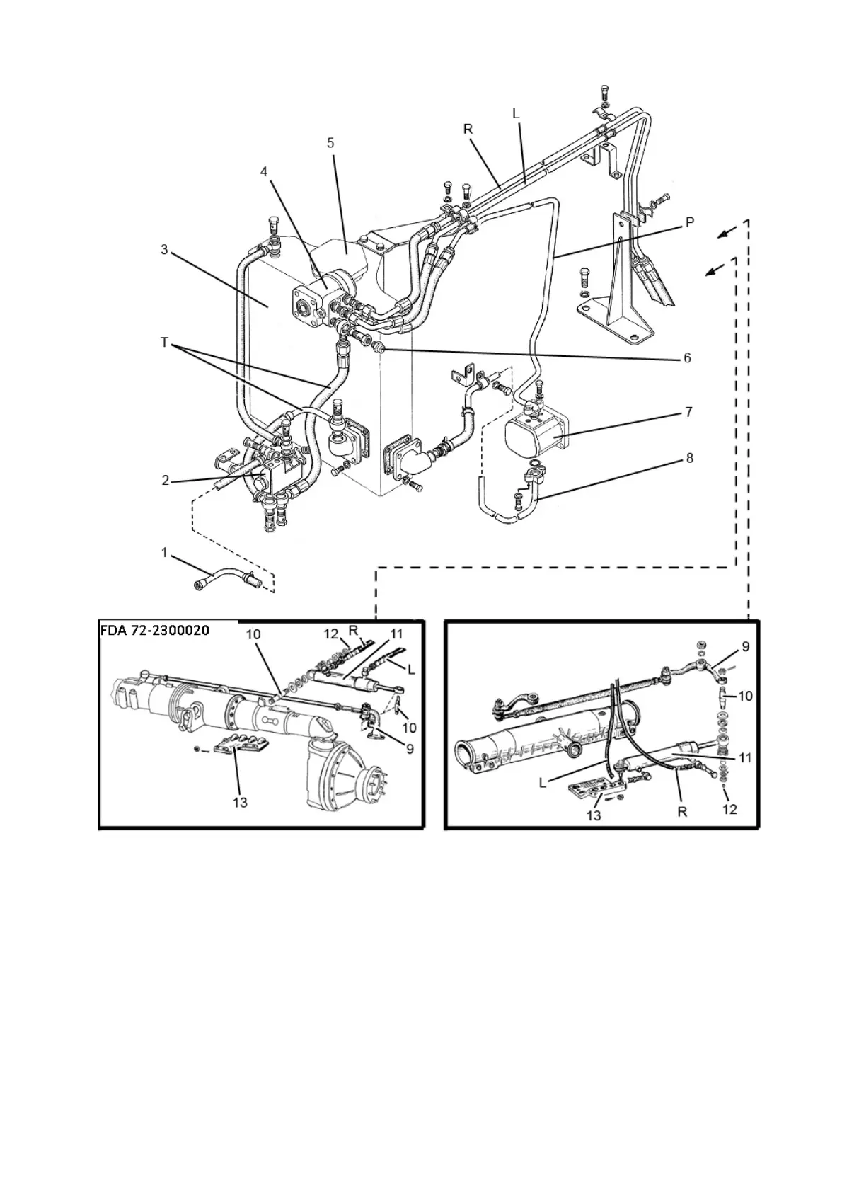 line; Т – drain hydraulic line; L – left turn hydraulic line; R – right turn hydraulic line.