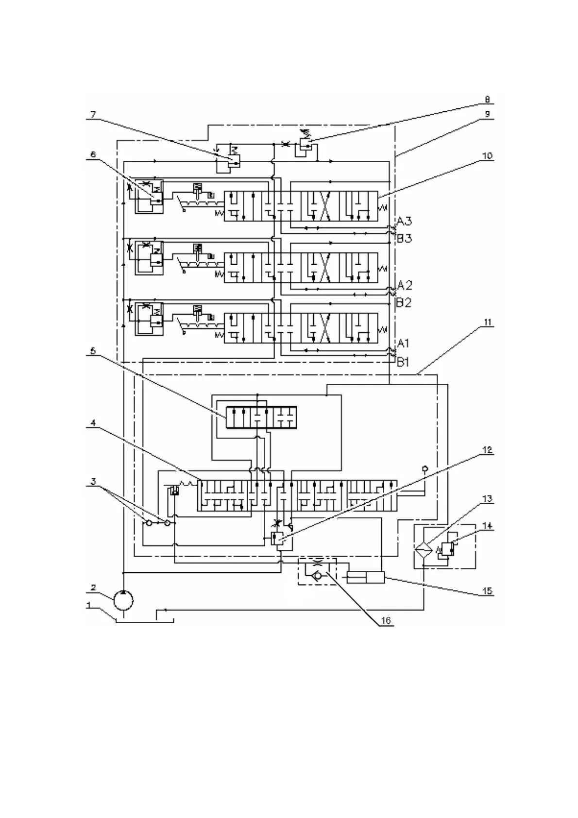 draulic system; 14 – filter valve; 15 – cylinder; 16 – retarding valve.