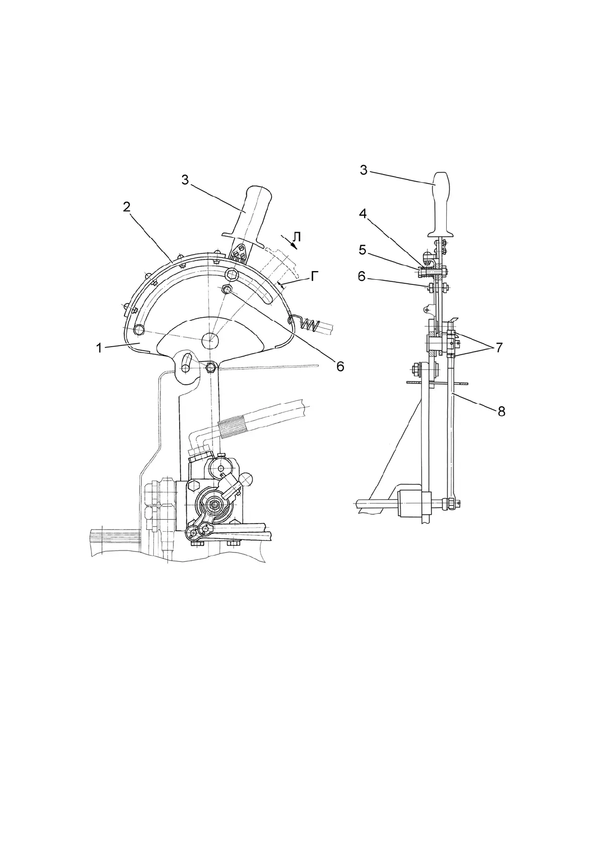 that, when handle 3 is shifted into the rear most position along tractor travel, clearance «Г»