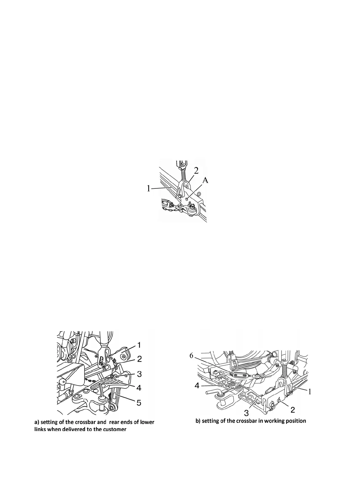 tomer with a crossbar (TСУ-1Zh) and rear ends of lower links, as shown in view a) of figure