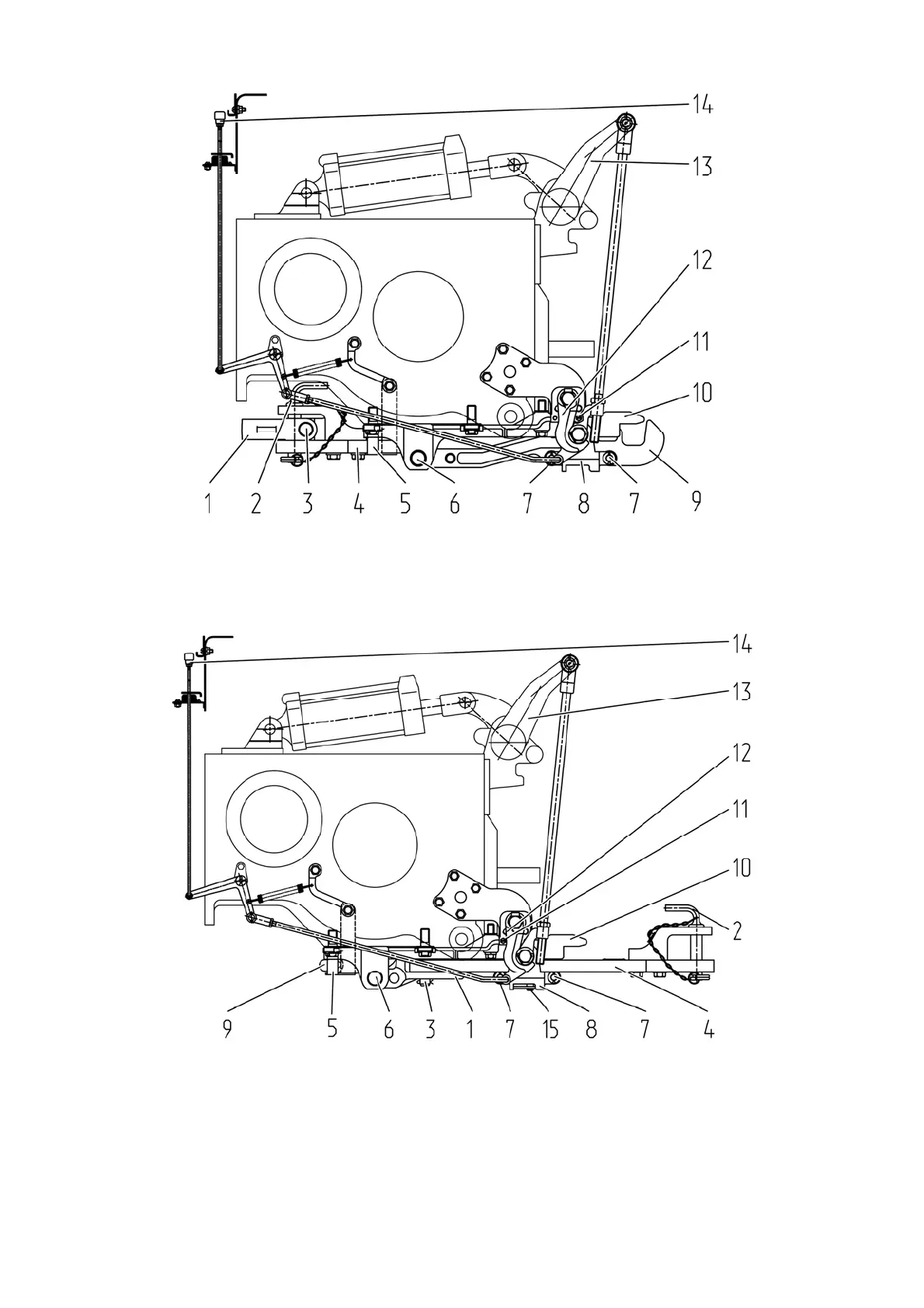 9 – hydraulic hook; 10 – bracket; 11 – bolt; 12 – grip; 13 – lever; 14 – handle; 15 – pin.