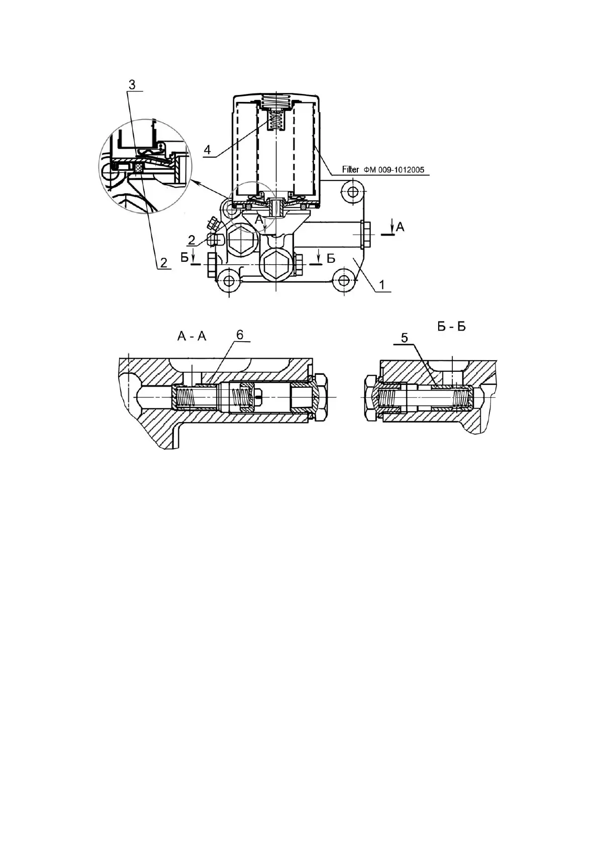 1 – filter body; 2 – gasket; 3 –anti-drainback valve; 4 – bypass valve; 5 – pressure relief