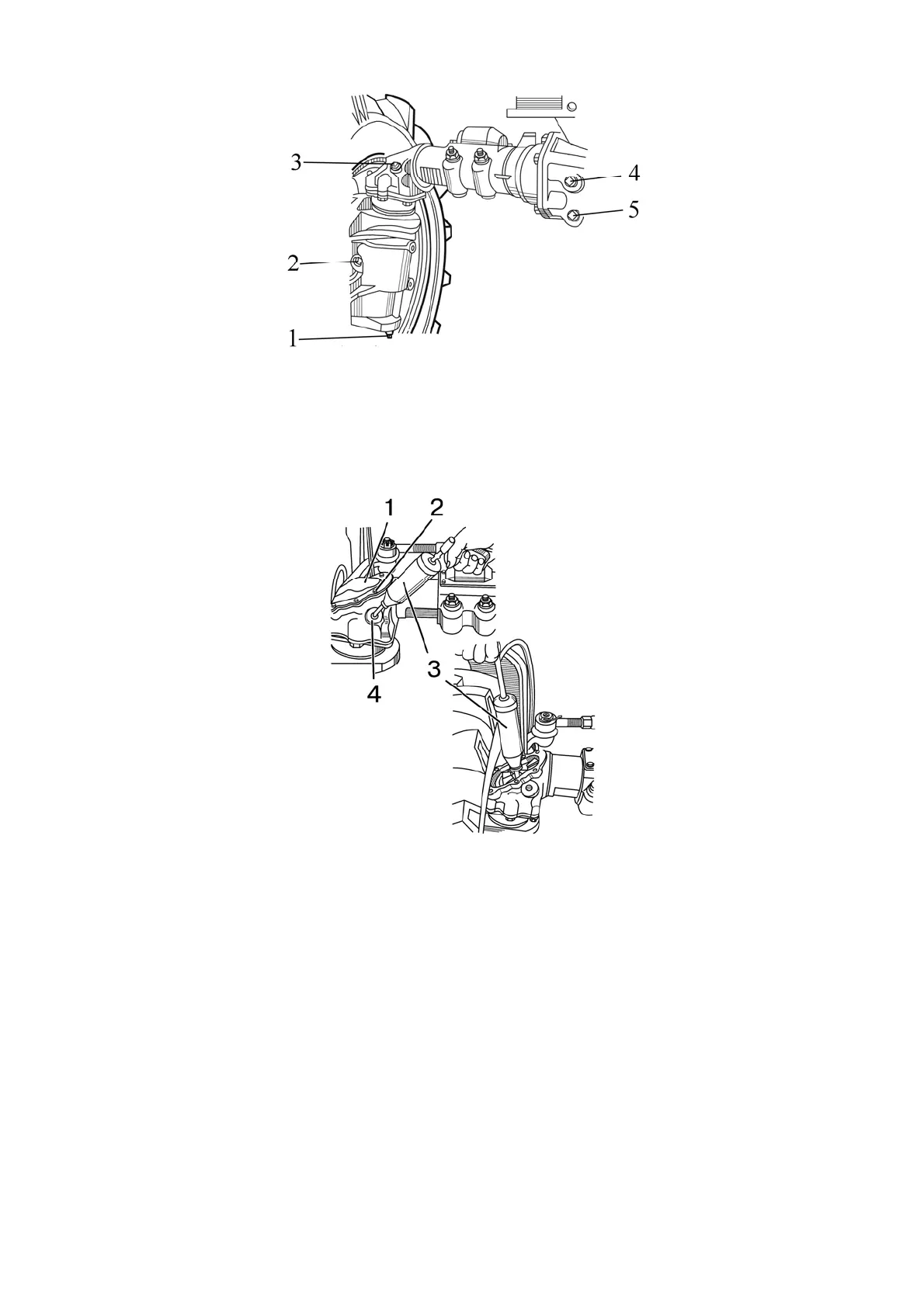 1, 5 – drain plug; 2, 3, 4 – level/fill plug;