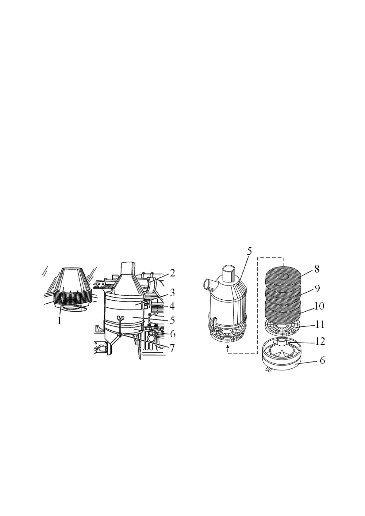 1 – monocyclone; 2, 3 – clamp, 4 – bolt; 5 – air cleaner; 6 – sump; 7 – nut; 8, 9, 10 – fil-