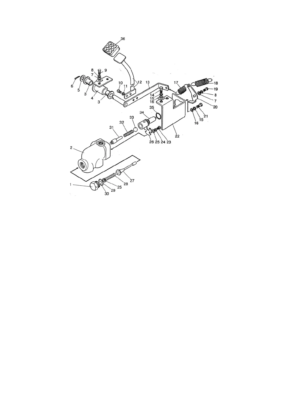 arrester; 31 – guide piece; 32 - spring; 33 - ball; 34 - spool; 35 - ring; 36 - pedal cushion.