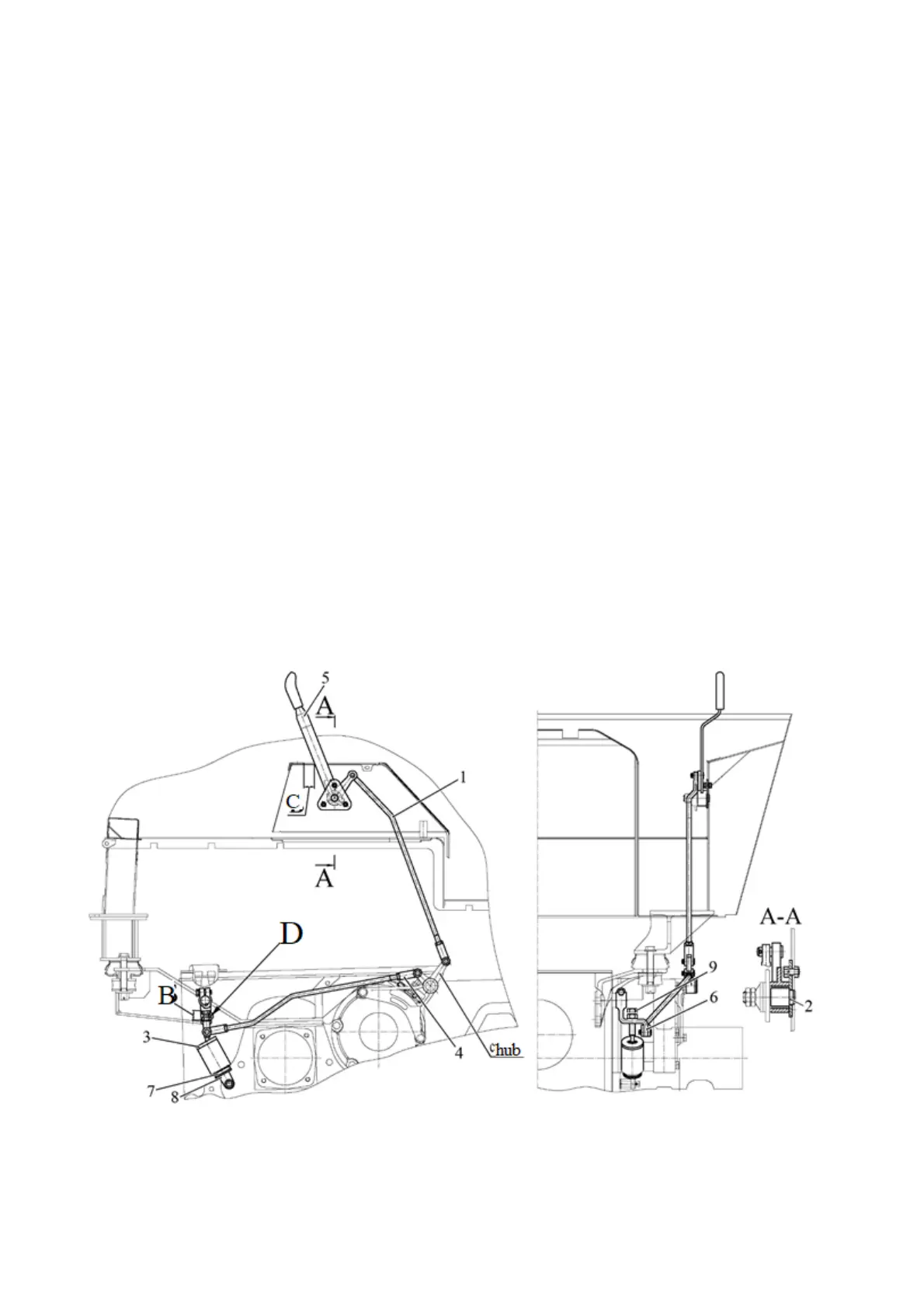 1 – rod; 2 – bracket; 3 – cover; 4 – rod; 5, 6 – lever; 7 – spring; 8 – eye; 9 – bolt.