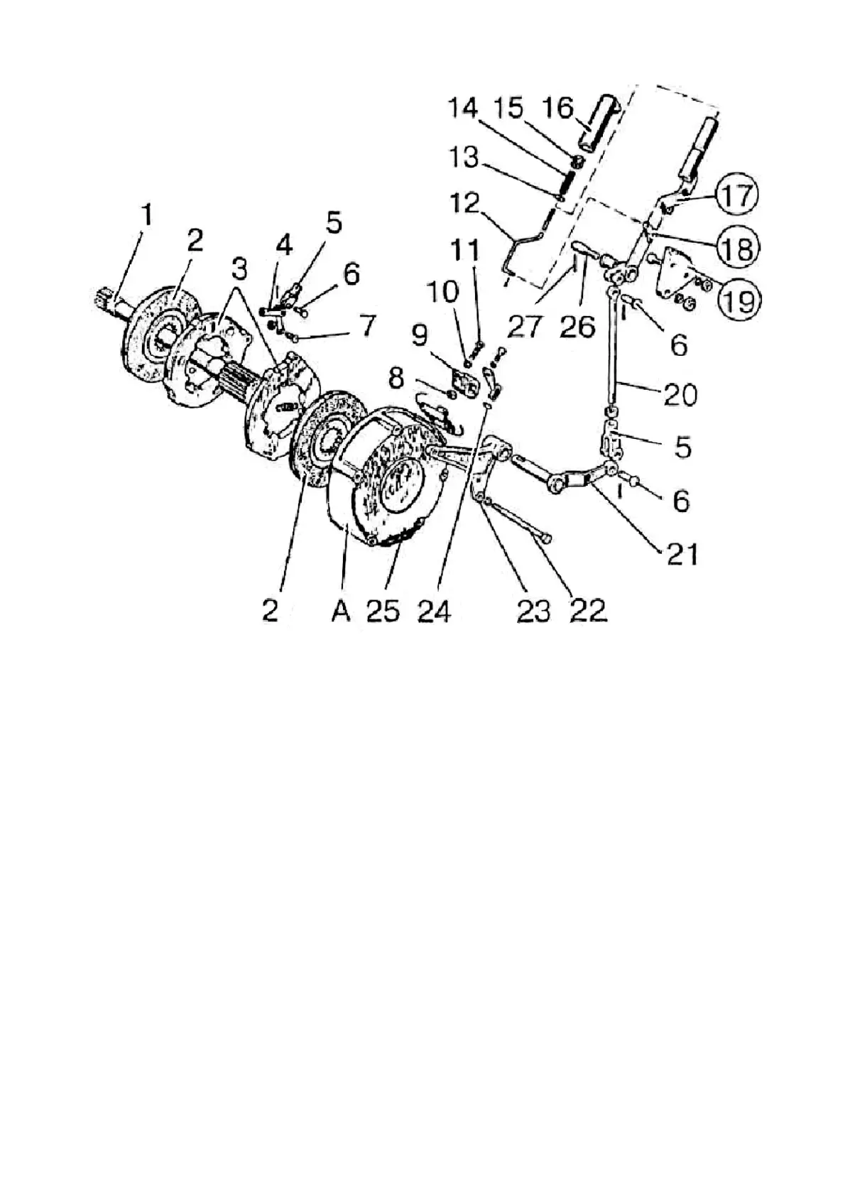 handle; 17 – parking brake lever; 18 - detent; 19 - sector; 20 - rod; 21 - lever with shaft; 22
