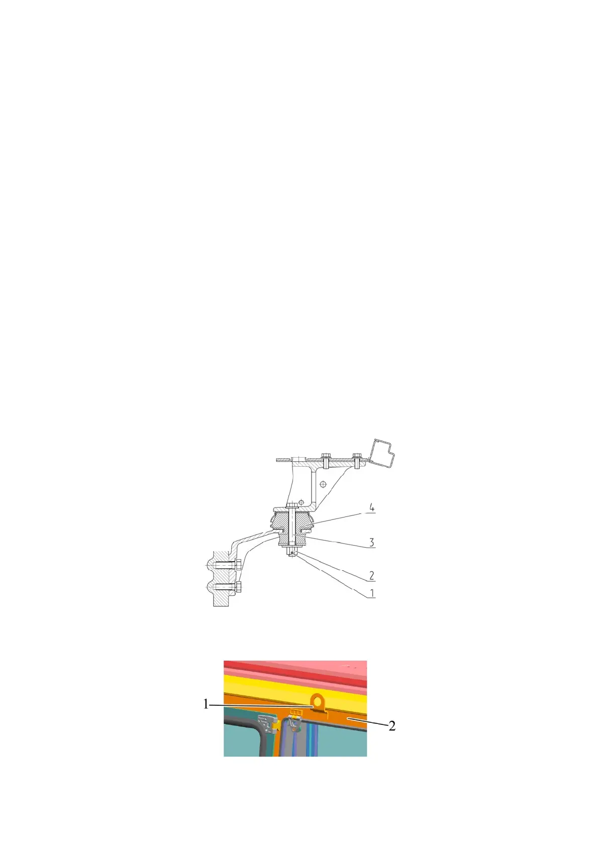 using two eyelets 1 (Figure 3.15.2), welded to upper longitudinal beams 2 of the cabin, to fix