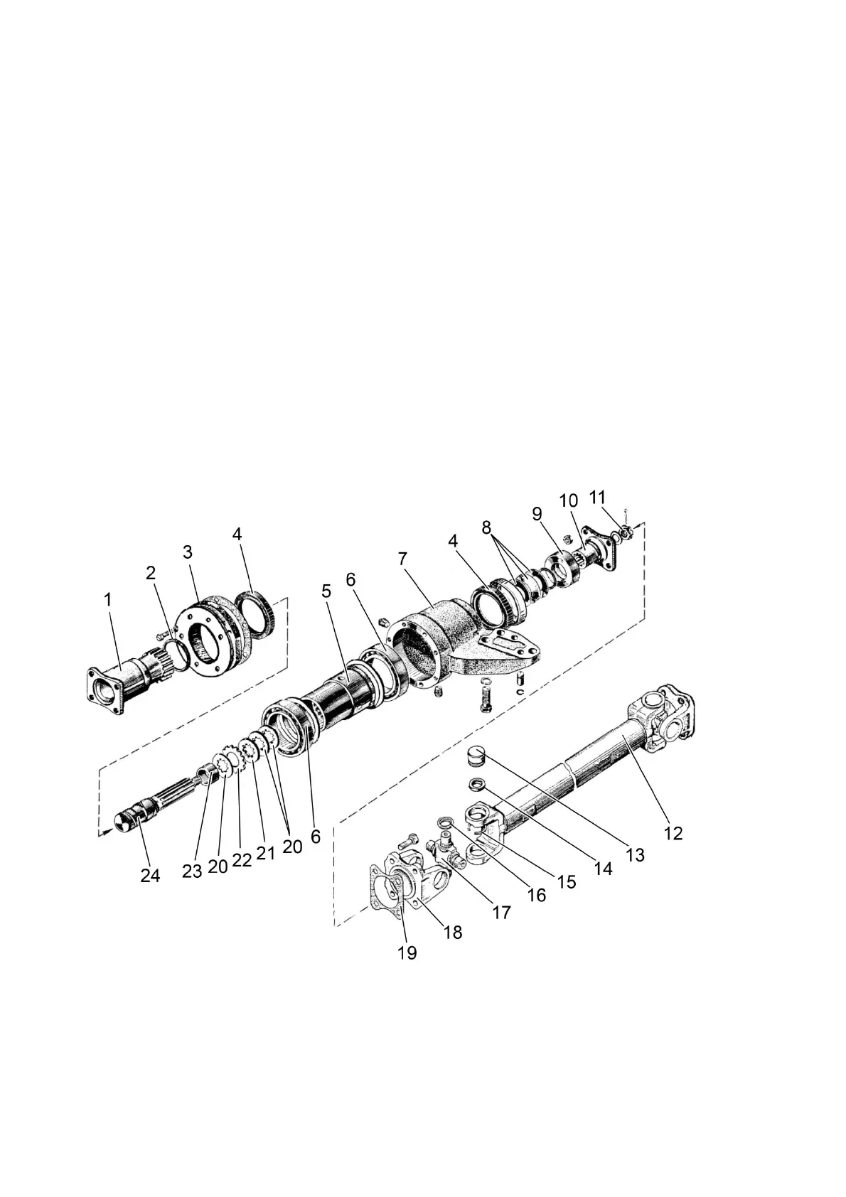 cardan shafts are secured by flanges 18 to flanges of the transfer box, intermediate bearing