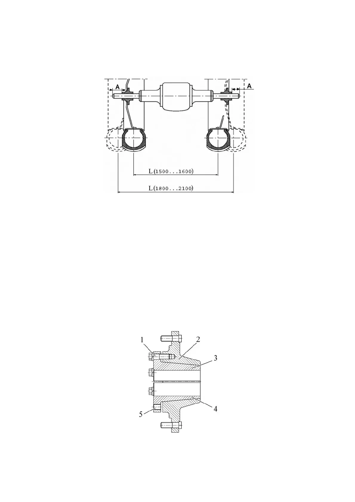 1 – tie bolt; 2 – hub housing; 3 – upper insert; 4 – lower insert; 5 –holes for disassem-