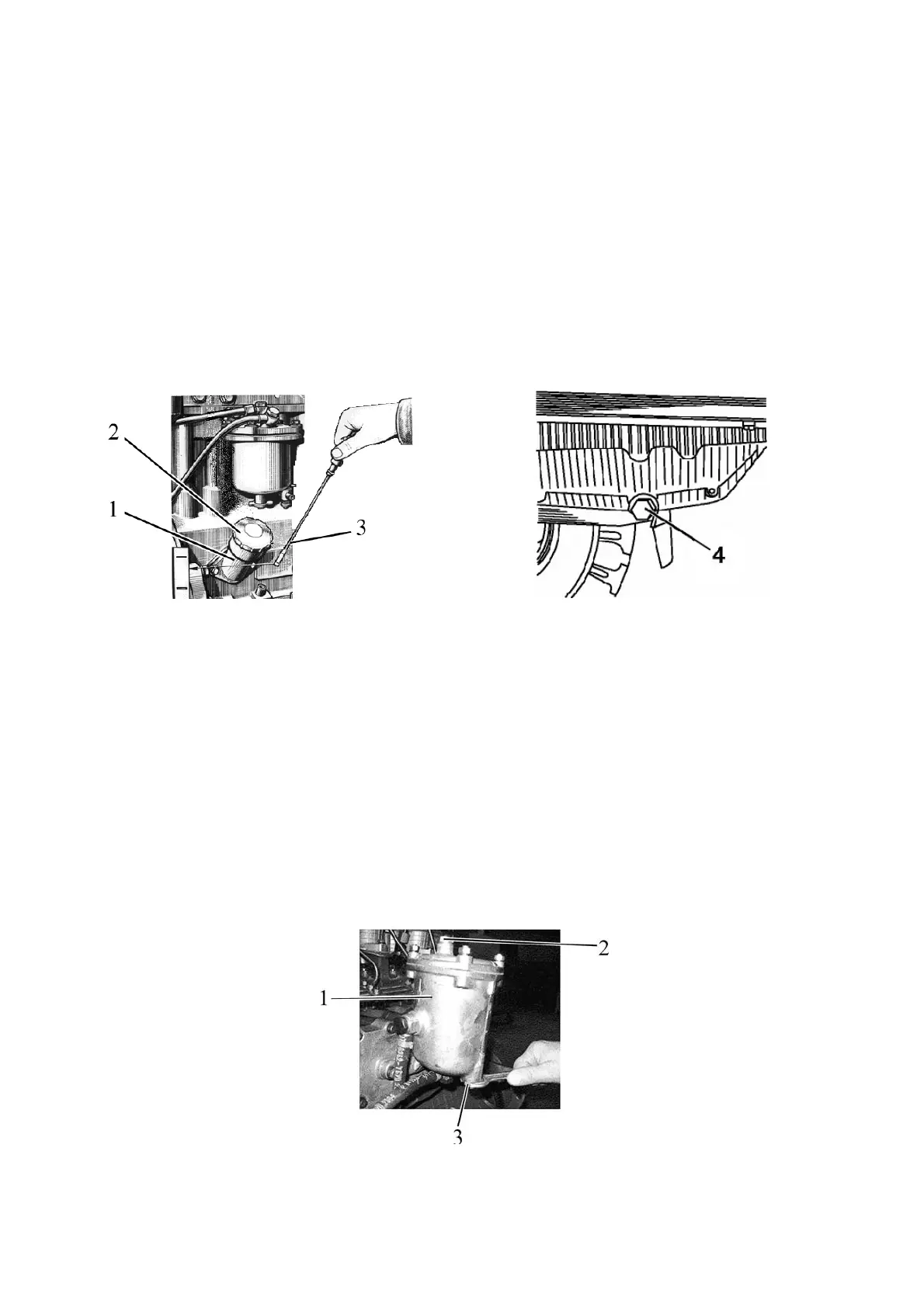 If your tractor is equipped with dismountable fine fuel filter, please drain sediment in