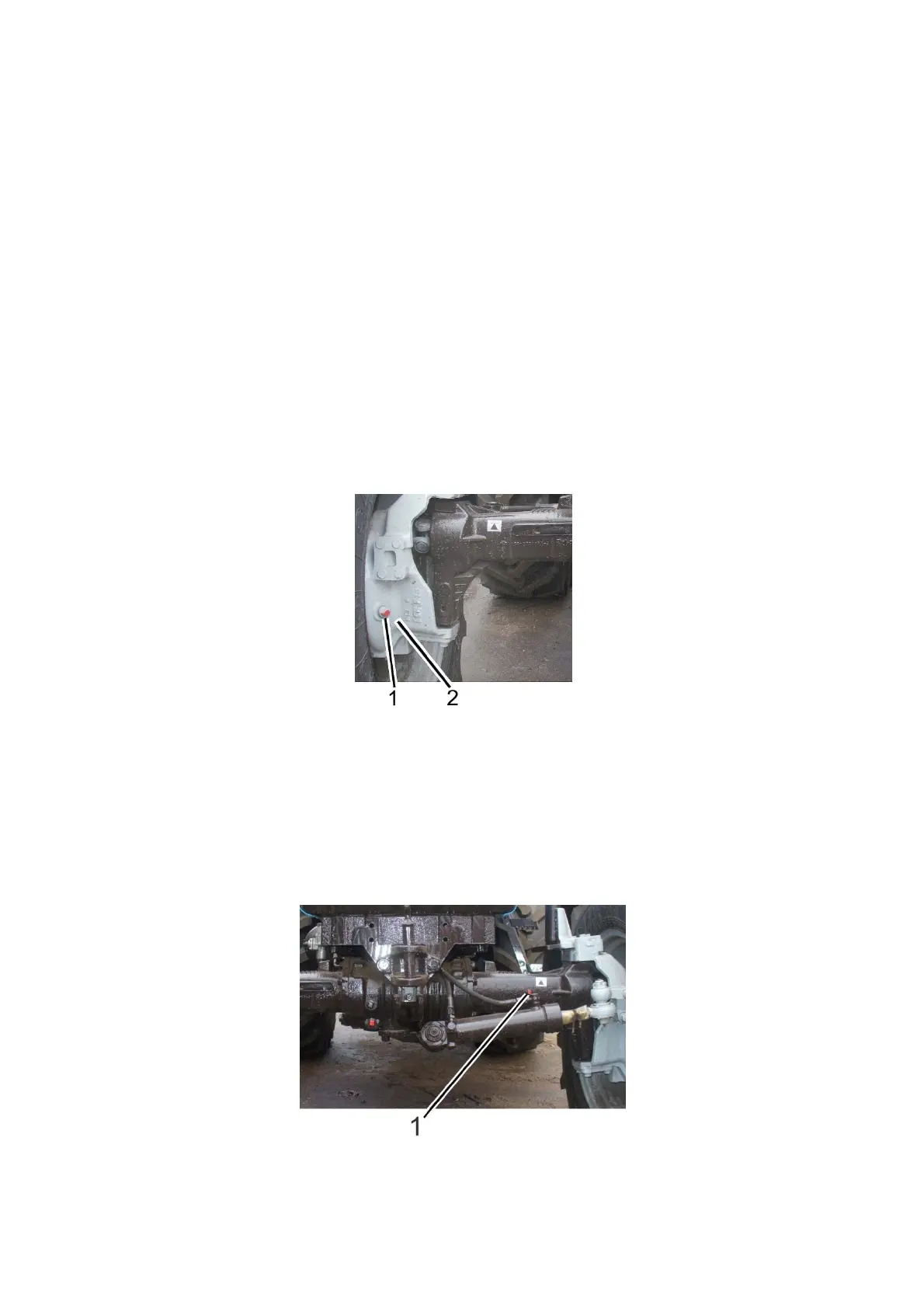 1 – check/fill plugs opening, 2 – wheel gear group housing.