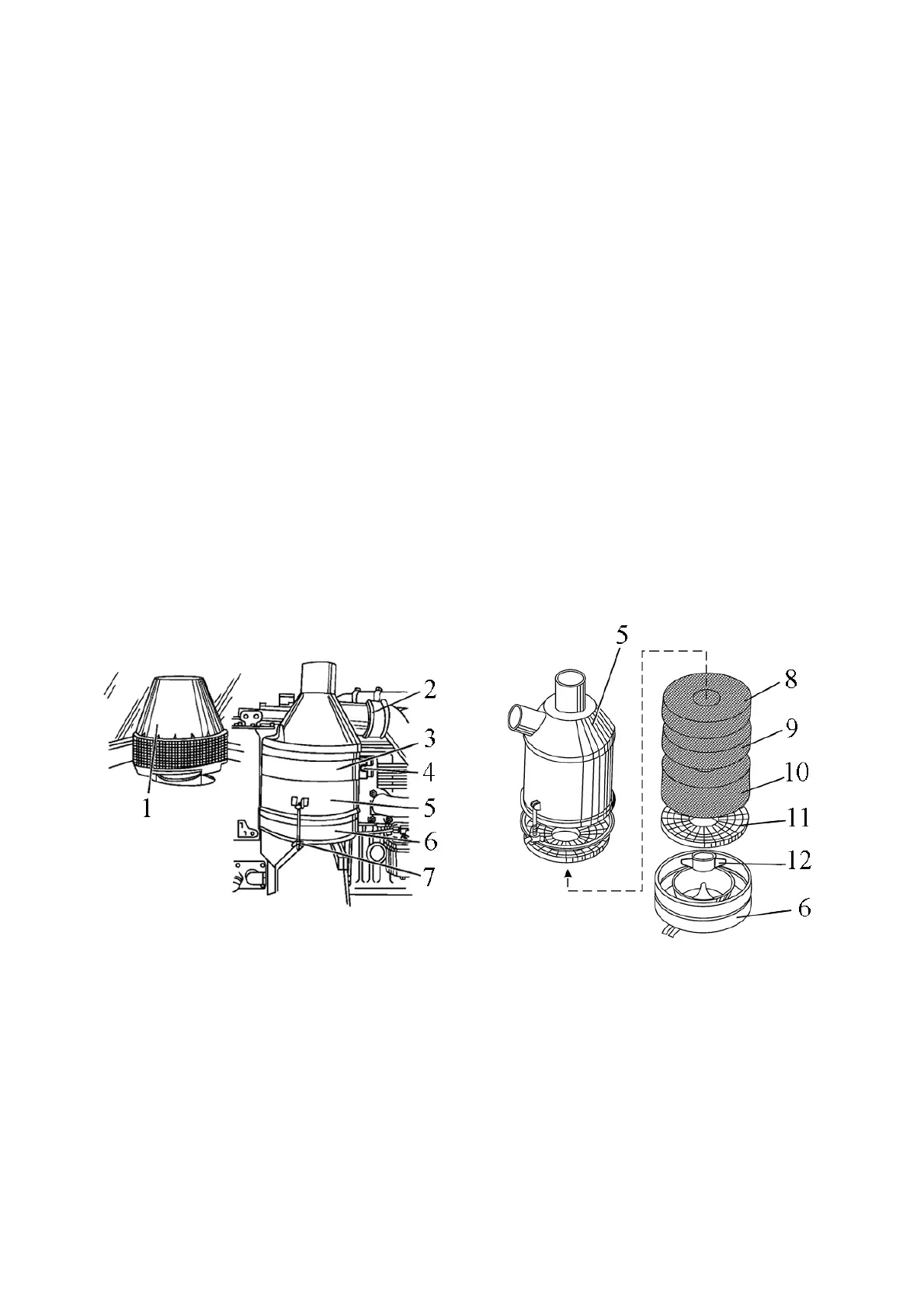 1 – monocyclon; 2, 3 – clamp, 4 – bolt; 5 – air cleaner; 6 – sump; 7 – nut; 8, 9, 10 – filter