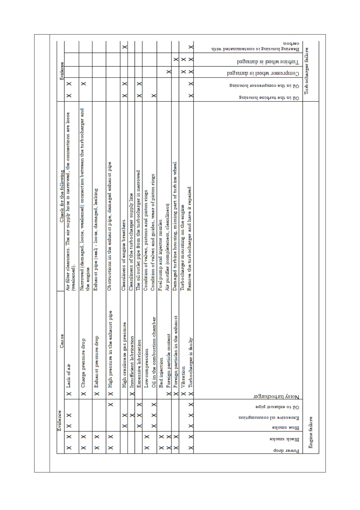 Table 7.1.2 – Identification of engine and turbocharger faults on BELARUS-892/892.2 tractors
