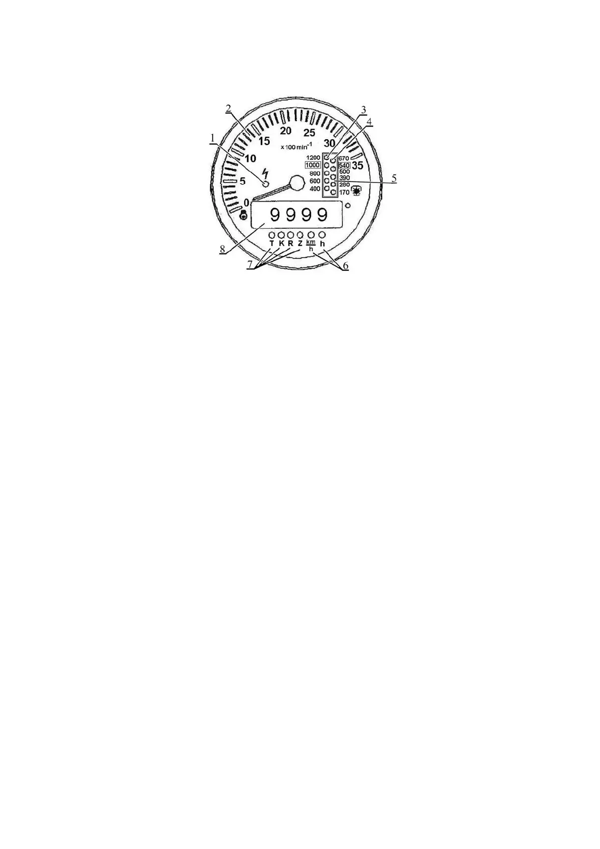 After the engine is started, engine rpm indicator 2 shows the turning frequency of the crank-