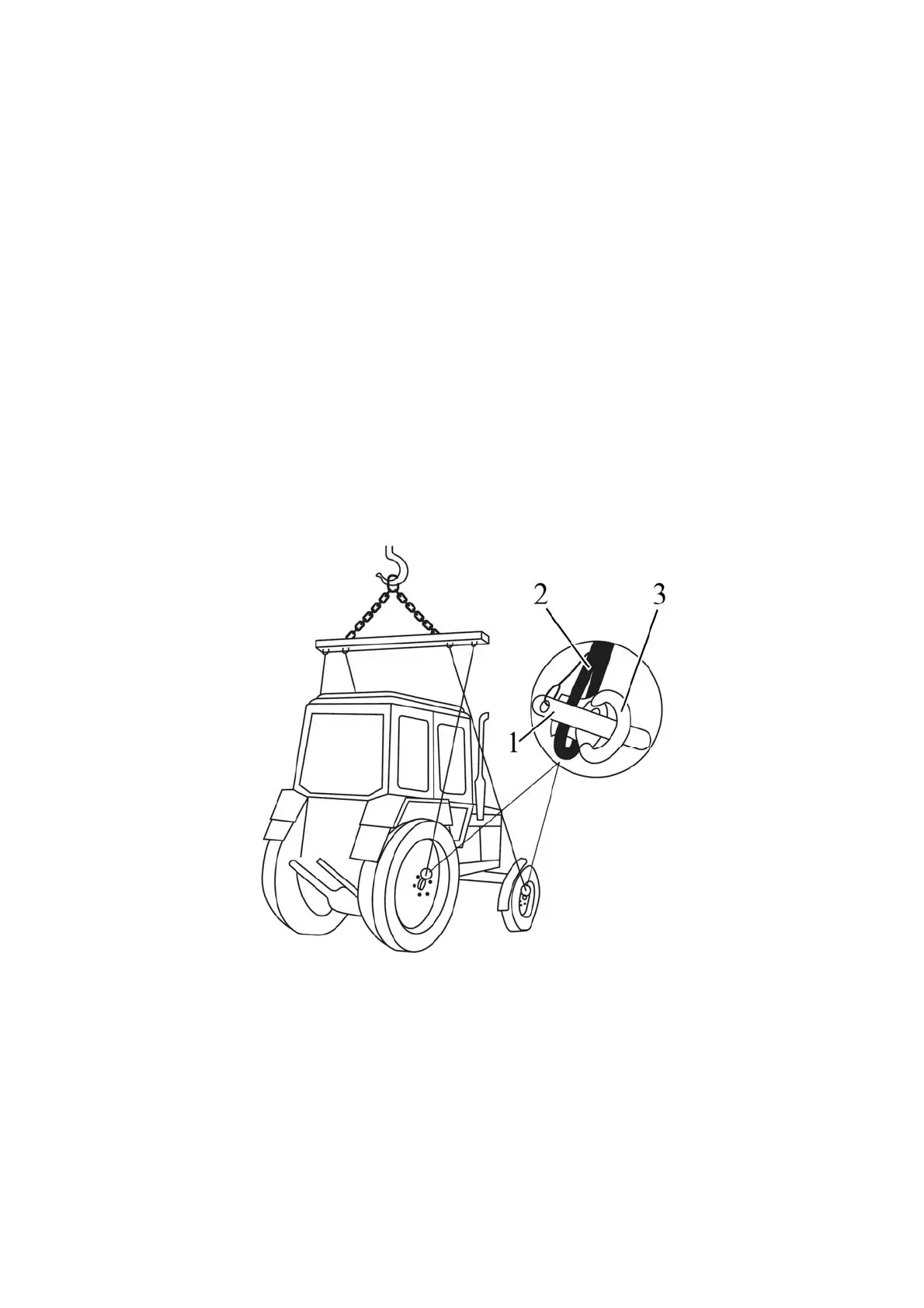 and to binder bracket by another end. Also fasten one sling rope on each side of the tractor