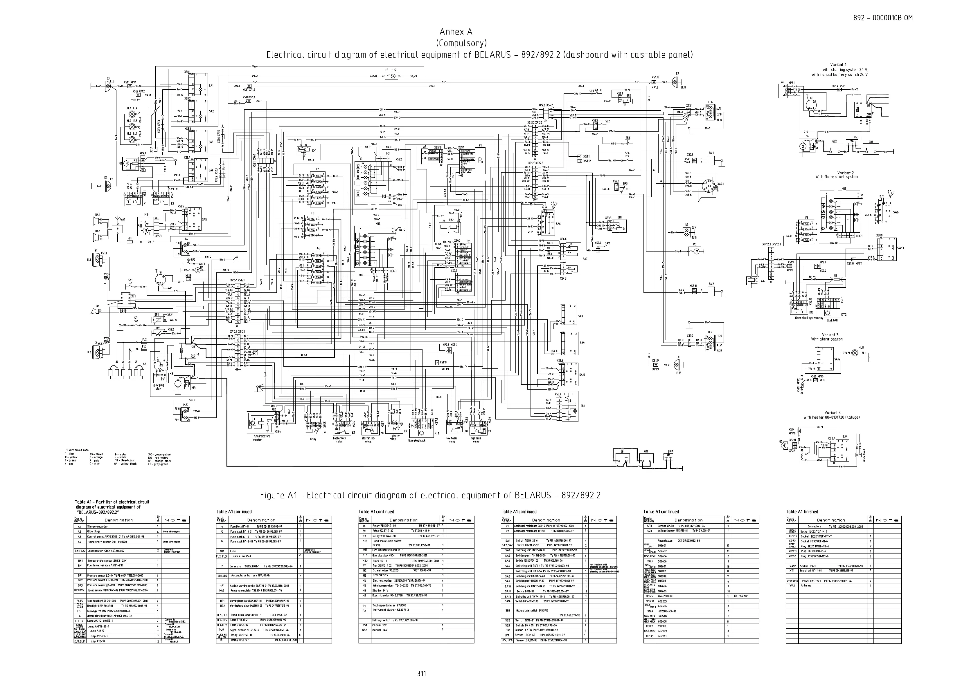 Belarus 892 - ANNEX A. (Compulsory) Electrical Circuit Diagram of Electrical Equipment of BELARUS - 892;892.2 (Dashboard with Castable Panel)