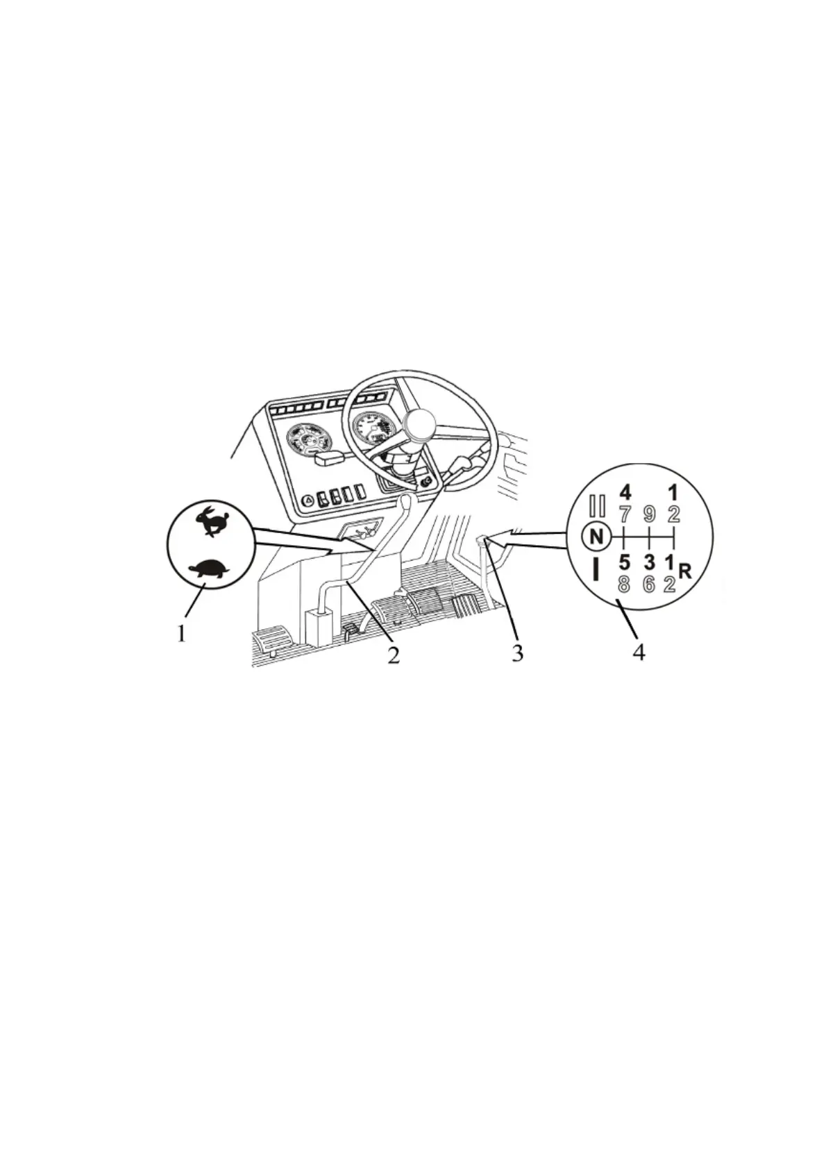Gears are shifted with two levers: range and gear shifting lever of gearbox 3 (Figure