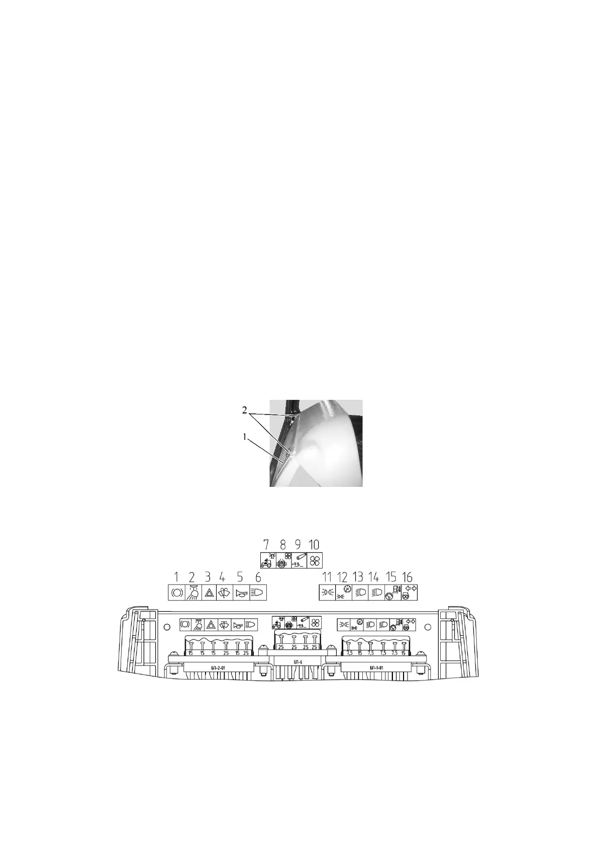 7 - fuse for front service headlights, beacon (when installed) with a rating of 25 A;