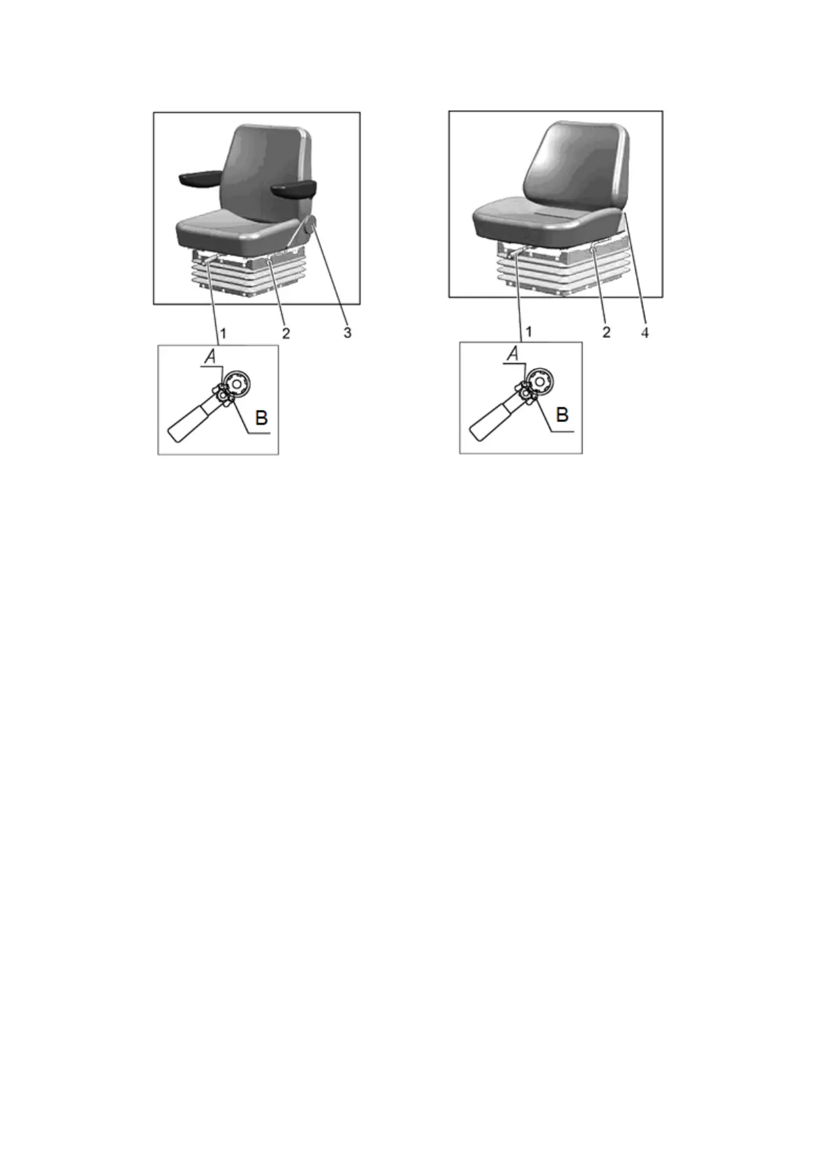 b) For the seat “BELARUS 80V-6800000”, the backrest tilt angle is adjusted by means