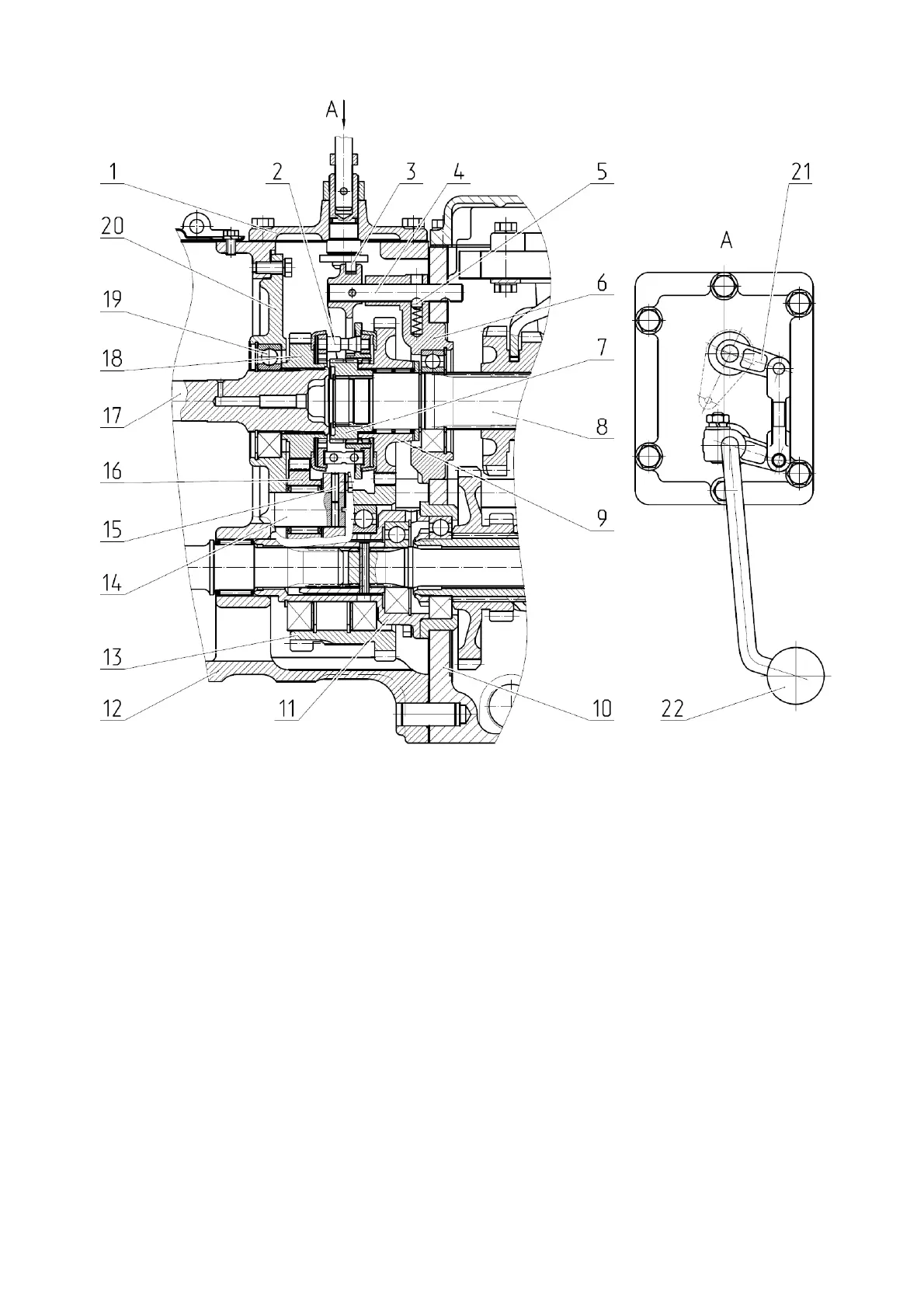 - pin; 16 – planet gear gear; 17 - ball bearing; 18 - power shaft; 19 - drive gear; 20 - cover;