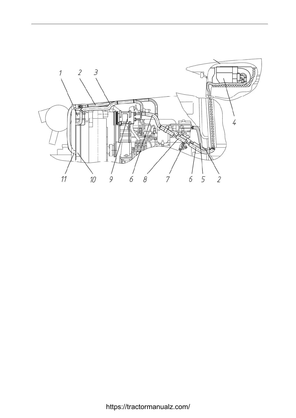 line from heater-cooler to compressor; 7 - quick-release hoses coupling between a cab and filter