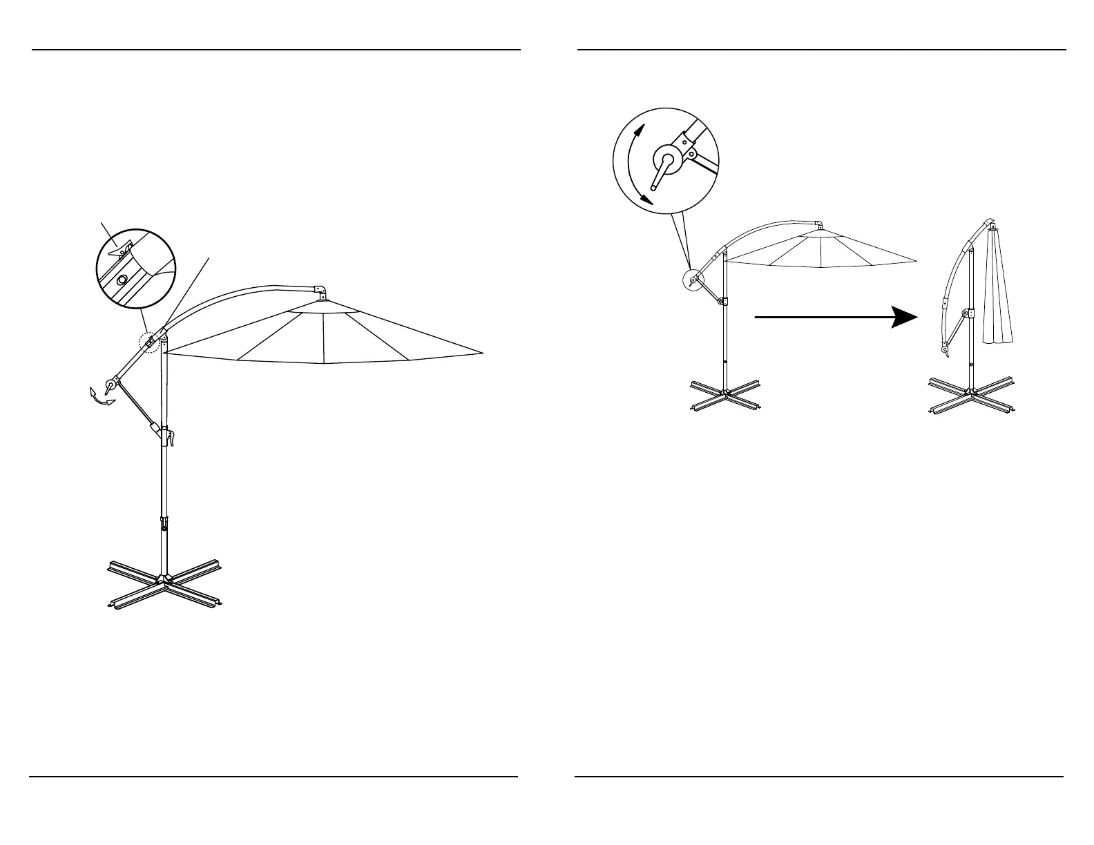 girar la manivela en sentido horario para abrir el toldo de la sombrilla