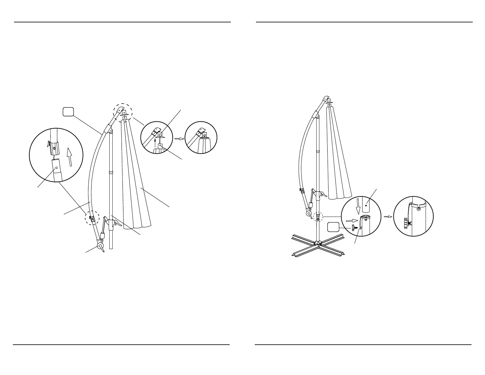 Place the pole of the Umbrella Frame (A) inside of the Bottom Pole (B) so