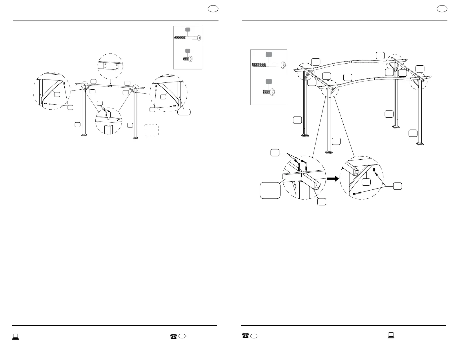 desde el exterior de la pérgola. Insertar dos pernos M6x65 mm (EE)