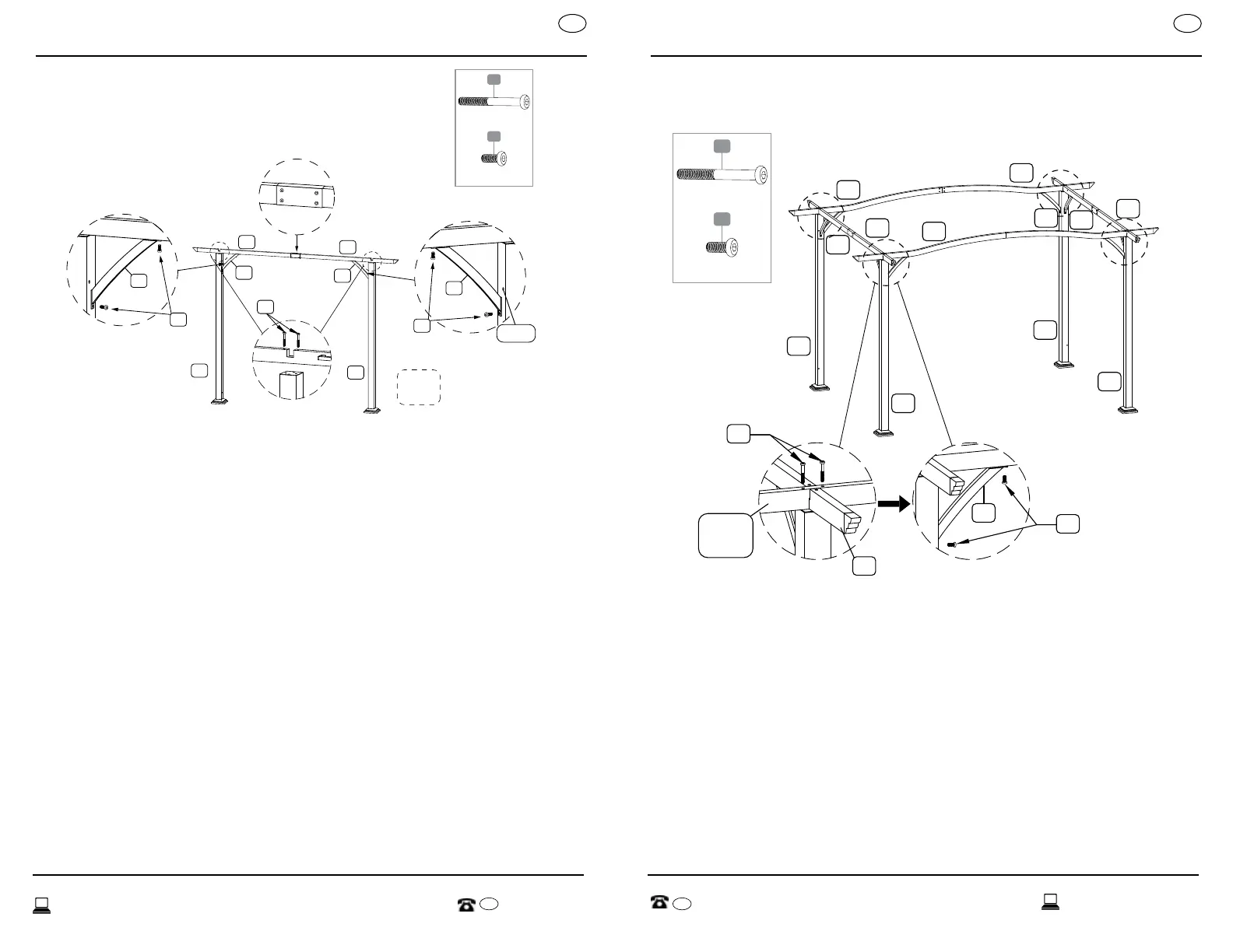 right when facing these parts from outside the pergola. Insert two