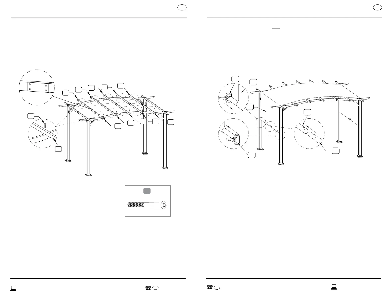 look, place Canopy Supports (E) on the pergola frame so that the head