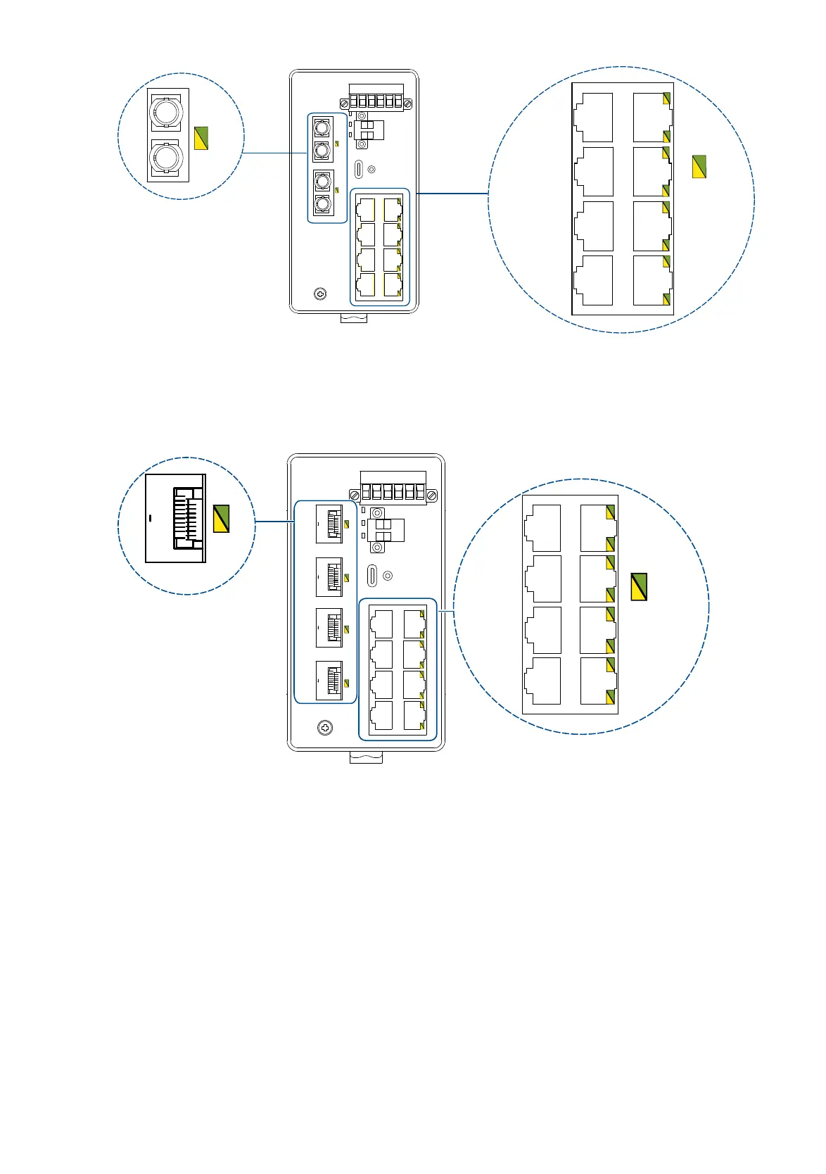 Figure 3: LED display elements for device variants with DSC, DST and 8 × RJ45