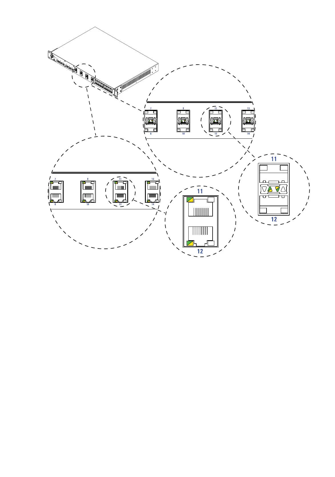Figure 10: Port status: Location of the display elements of Port group II on the device
