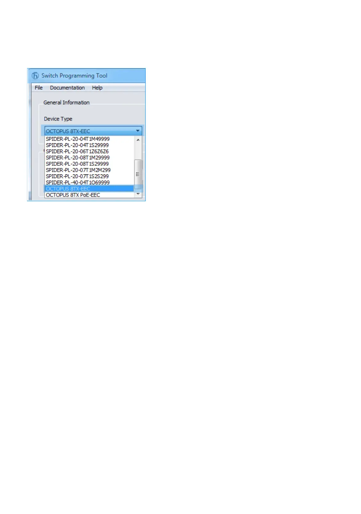 Select your device variant from the drop-down list “Device Type”.