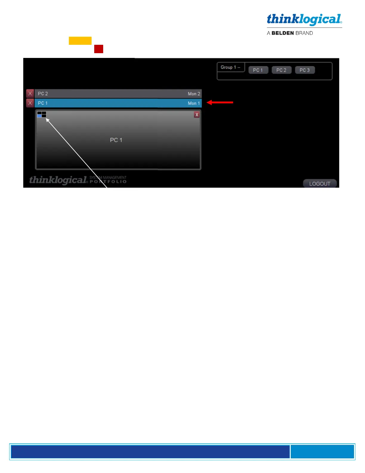 4. Click on the TAKE button. PC 1 is now assigned to Monitor 1 and PC 2 remains assigned to