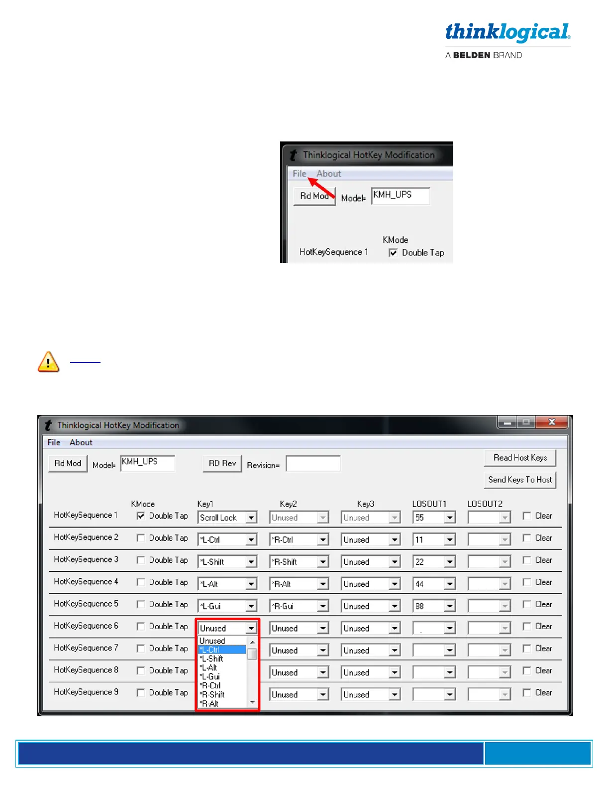 By left-clicking on an “unused” Key1 drop-down menu, users can select from a list of key sequences.