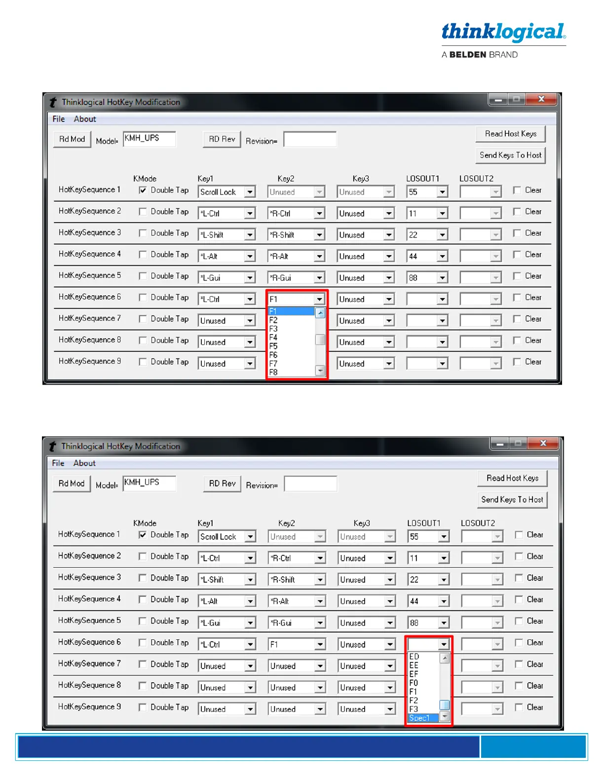 Left-click on the Key2 drop-down menu to select the Key 2 sequence. In this case, F1 is selected for
