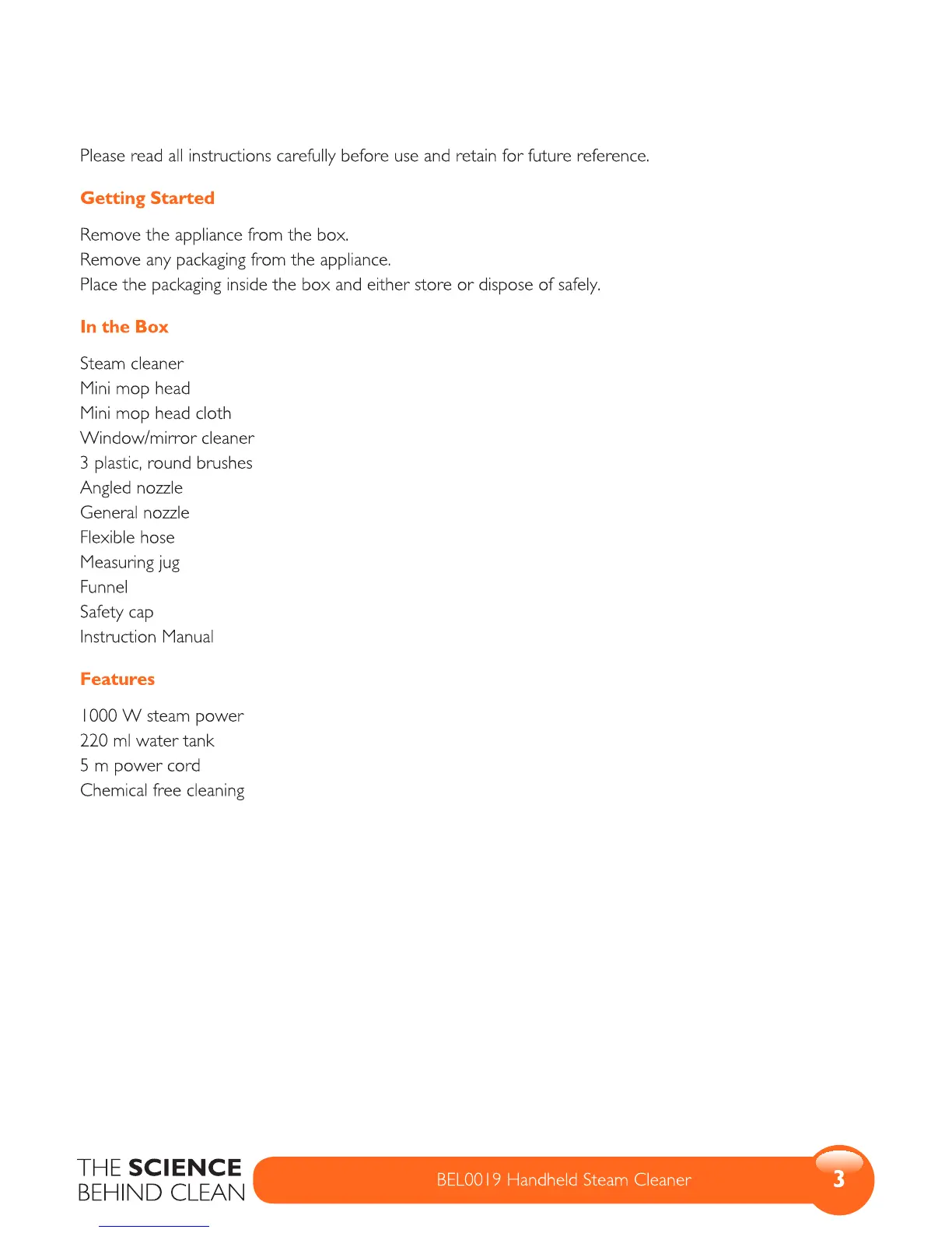 Beldray BEL0019 - Getting Started; In the Box; Product Features