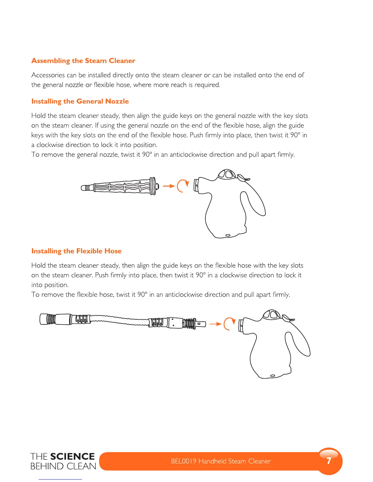 Beldray BEL0019 - Assembling the Steam Cleaner; Installing the General Nozzle; Installing the Flexible Hose